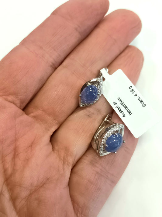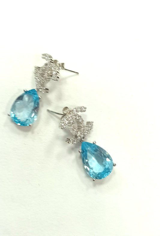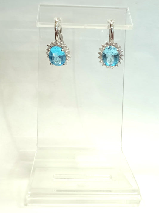 Серьги с голубым топазом (7×9мм)+кубик циркона