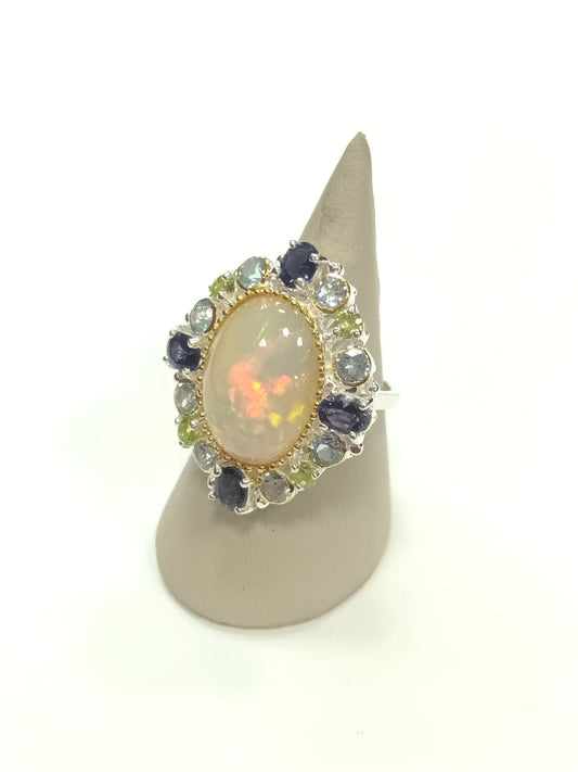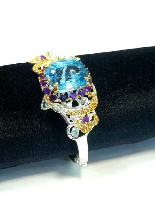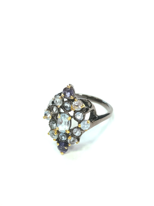 Кольцо с натуральными голубыми топазами(6×4) и иолитами