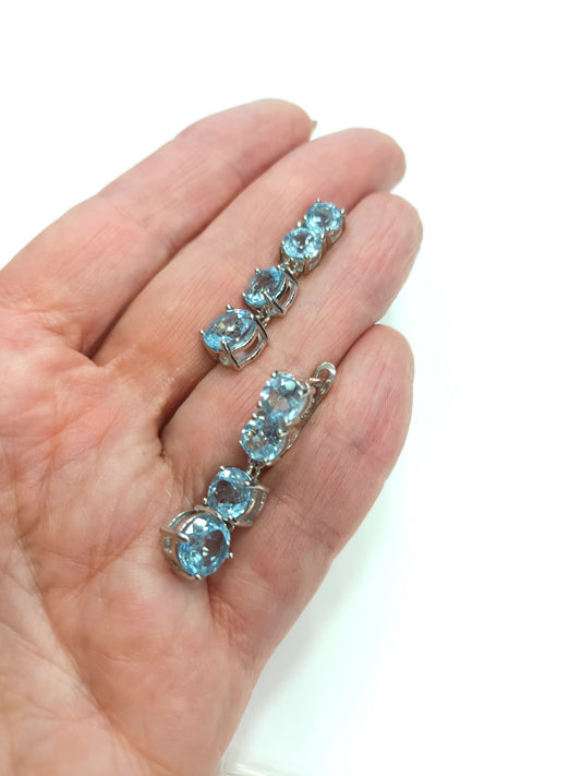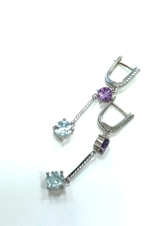 Серьги с натуральными голубыми топазами и аметистами (длина 7см)